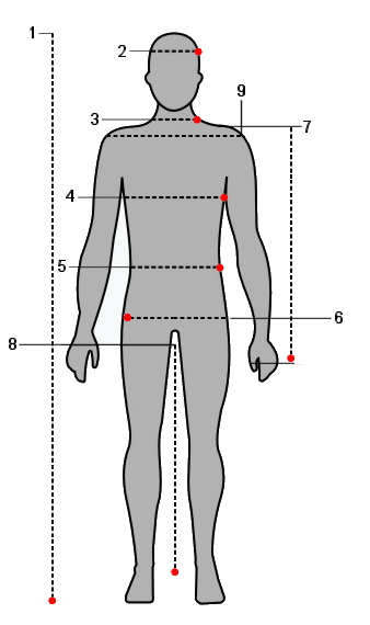 If you are unsure, send us your measurements for the points indicated: we will be happy to suggest the most suitable size.